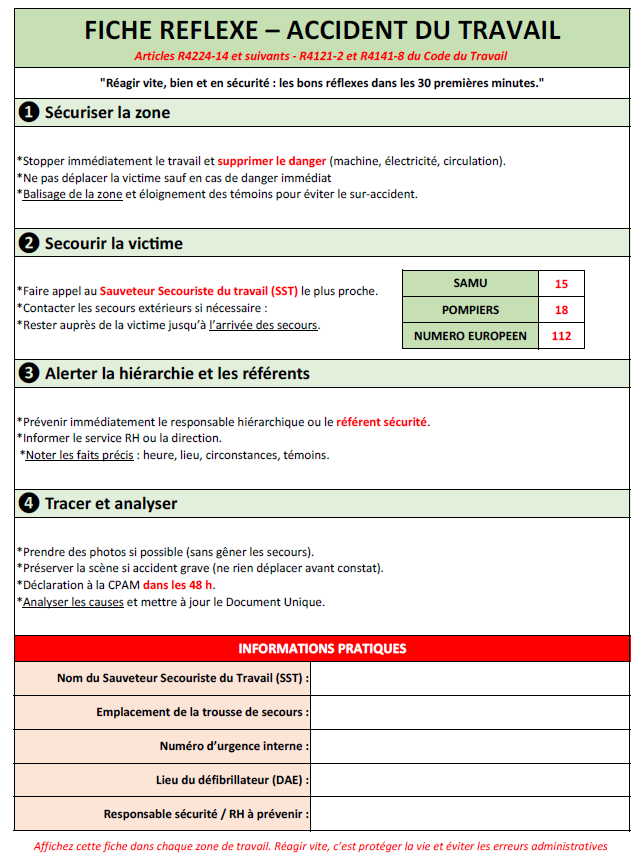 Articles R4224-14 et suivants – R4121-2 et R4141-8 du Code du Travail